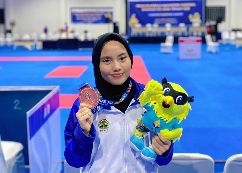 (UT Surakarta, 27 September 2025) Mahasiswa Universitas Terbuka (UT) Surakarta, Hasna Hapsari dari Program Studi Ilmu Hukum-S1 kembali mengharumkan nama almamater dengan meraih Medali Perunggu pada Cabang Olahraga Karate Kumite Under 50 Kg di ajang Pekan Olahraga Mahasiswa Nasional (POMNAS) XIX Tahun 2025 yang dilaksanakan di Lapangan Futsal Universitas Diponegoro (UNDIP), Semarang pada tanggal 26 September 2025.